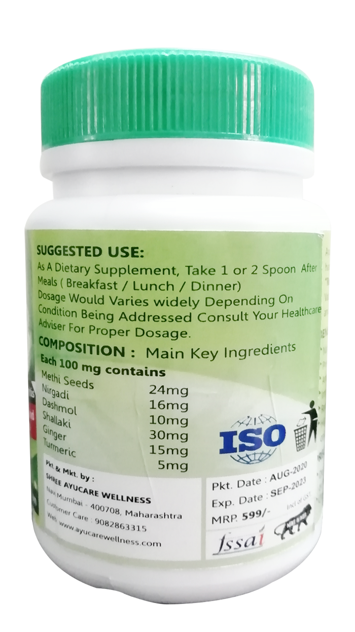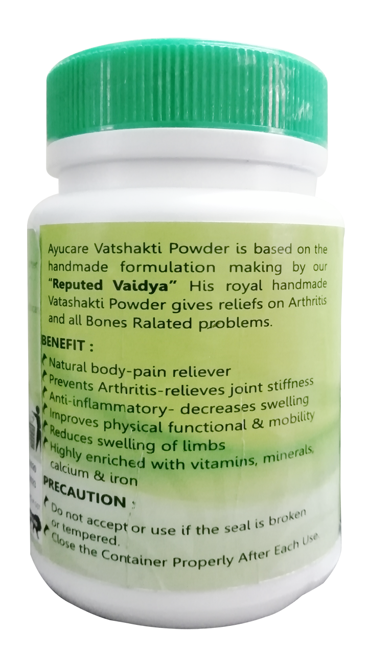 His royal handmade Vatashakti Powder gives reliefs on Arthritis, Joint Pain, Swelling and Vata Problem.This product gives effective result on arthritis problem rather than others.
